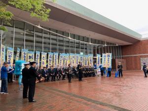 最後に,9年目となる令和5年度「呉海自カレー事業」を心新たにスタートするために,皆さんで「頑張ろうエール」を行いました。