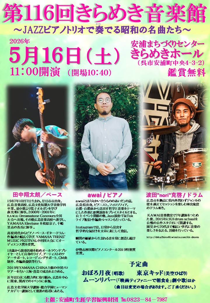 第116回きらめき音楽館を開催します(安浦)