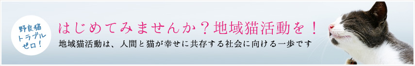 地域にお住まいの皆さんが主体となり、野良猫に不妊去勢手術をするなど適切な管理を行い、野良猫の数を減らすことで野良猫問題を解決し、「住みよい地域」をつくるための活動です。