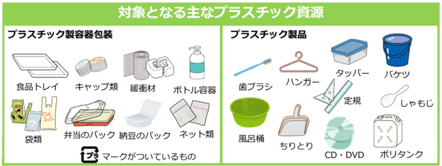 ごみの減量化や温室効果ガスの排出削減など,地球環境への負担軽減を図るため,これまで燃えるごみとして収集し,焼却処分していたプラスチックを,資源物として収集します。