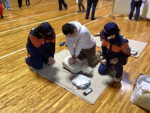 【天ぷら油火災実験装置】 【心肺蘇生法指導の様子】