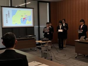 | 11時00分 議員インターンシップ学生の 石田 枝里さん,山口 有紀さん,山土 莉奈さん,狭間 千聡さん,中村 瑠菜さん | ||