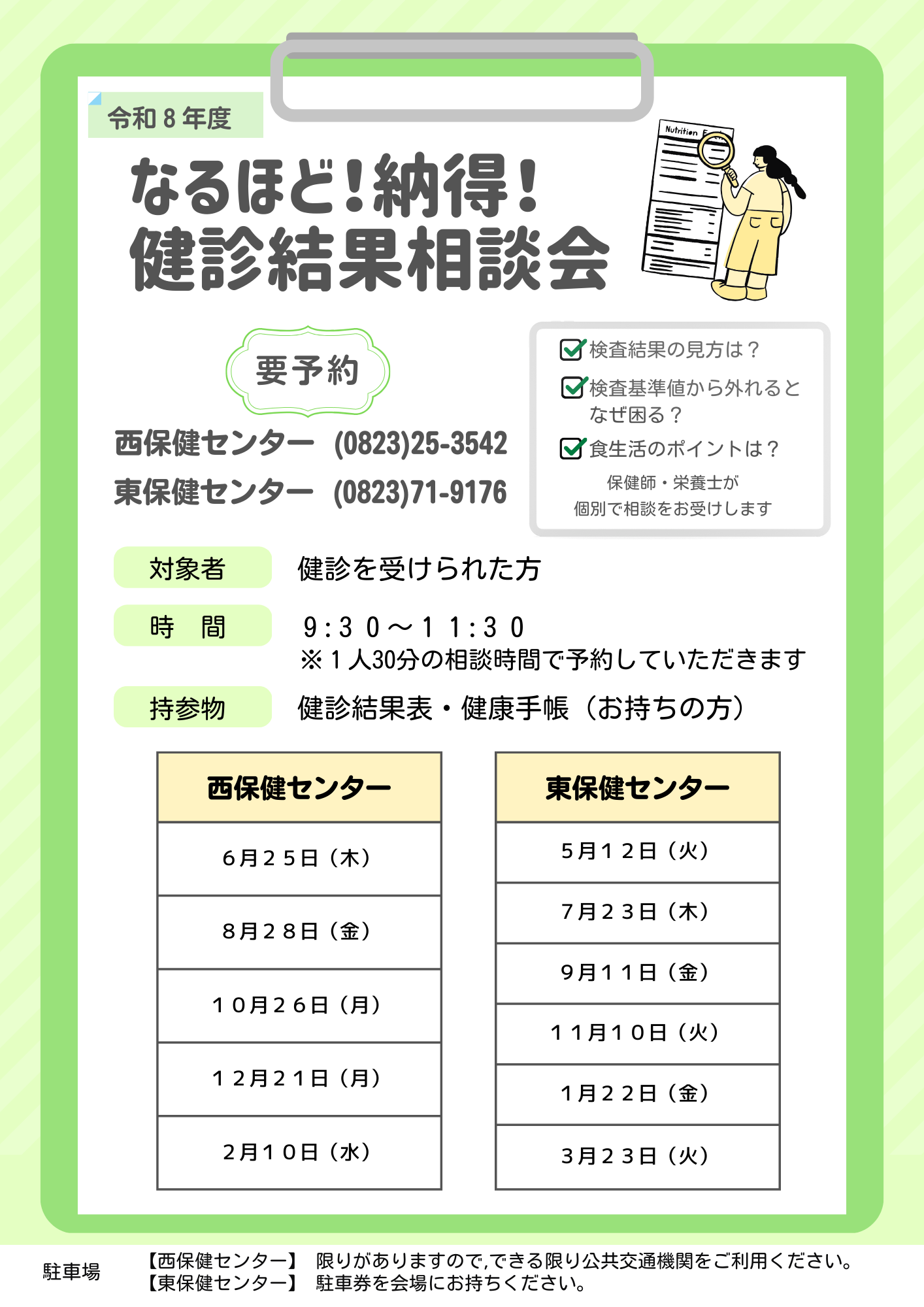 健康診断の結果の見方や生活習慣病の予防方法,健康に関して不安に思っている事について,保健師・栄養士が一緒に考えます