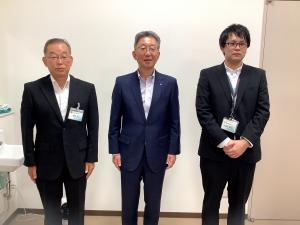 令和3年度学校教育の情報化指導者養成研修<外部リンク>をオンラインで受講した波多見小学校<外部リンク>の飯田教諭が,相模校長と来庁し,教育長に報告しました。